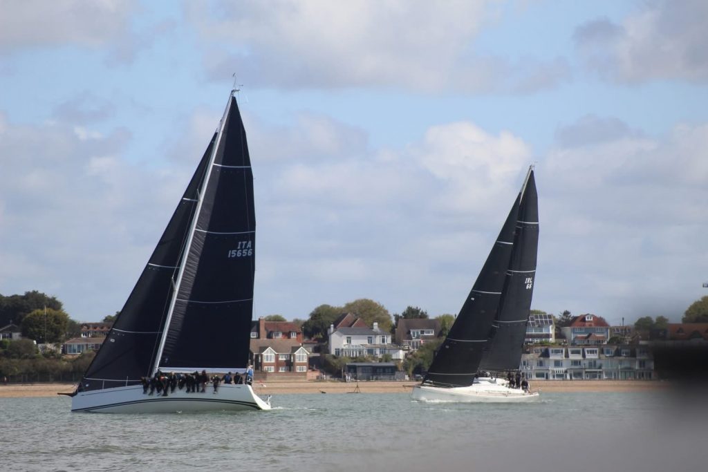 Three windward/leeward, 2-lap courses followed by around the cans to finish closer to the Southampton Water were set on Saturday, with a windward/leeward and Solent course for Sunday.